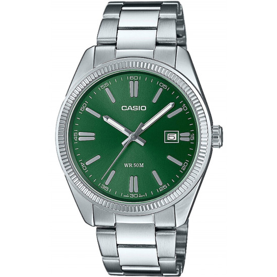Casio MTP-1302PD-3AVEF Ανδρικό Αναλογικό Ρολόι Μπαταρίας με Πράσινο Καντράν και Ασημί Μπρασελέ